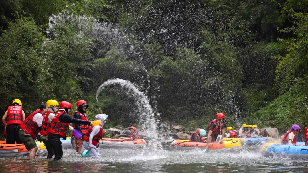 在文旅融合方面,漂流项目是全区水利系统通过用水确权、涉河涉堤审批等行政许可成功的文旅开发项目。作为莲都唯一的漂流项目,雅溪追浪漂流今年完成4.5公里河道提升改造,成为全市最火爆的漂流项目,日容客翻倍至1500人,上半年不仅为村集体增收43万元,新增90多个就业机会,还带动周边民宿、餐饮发展。漂流所在村庄库川、金竹村沿河道设置的戏水垂钓点,上半年营业额达12.4万元,形成“漂流+垂钓”的特色业态。此外,岩蒙村露营基地、稽勾古道景区等项目加速谋划,西溪村未来乡村启动数字化系统接入,“水+露营”“水+古道”等新业态正逐步成型,推动“流量”向“留量”转化。