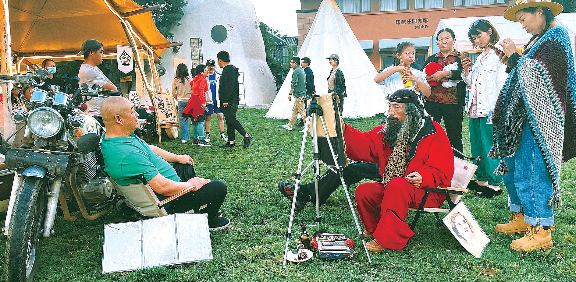 (三)与艺术相伴,在这里融入生活。一是打造“艺术家第二居所”, 吸引荒野之国创始人乔小刀、吉他大师高君、中国当代艺术家古原、中国美术家协会会员吕印等人在内50多位国内外一线艺术家在雪山艺术村集结、生活、创作,用艺术让旅居焕发新活力。二是推出大度假生活方式“雪山营地”IP,2021年起,雪山艺术村整合多年运营经验升级雪山夜市,推出大度假生活方式“雪山营地”IP,加入露天电影、现场艺术创作,推出心灵瑜伽、印香体验、绘画创作、洞箫吹竹等体验课程趣味雅集活动,成为丽江本地最具知名度的周末市集。主动迎合国家政策,围绕草坪打造美好生活场景,接纳热爱生活旅居客创业,推行美食、手工、文创、民俗风情、特产等多种类别地摊经济,每晚摊主人均收益可达数百至上千元,营业额达3—5万元。